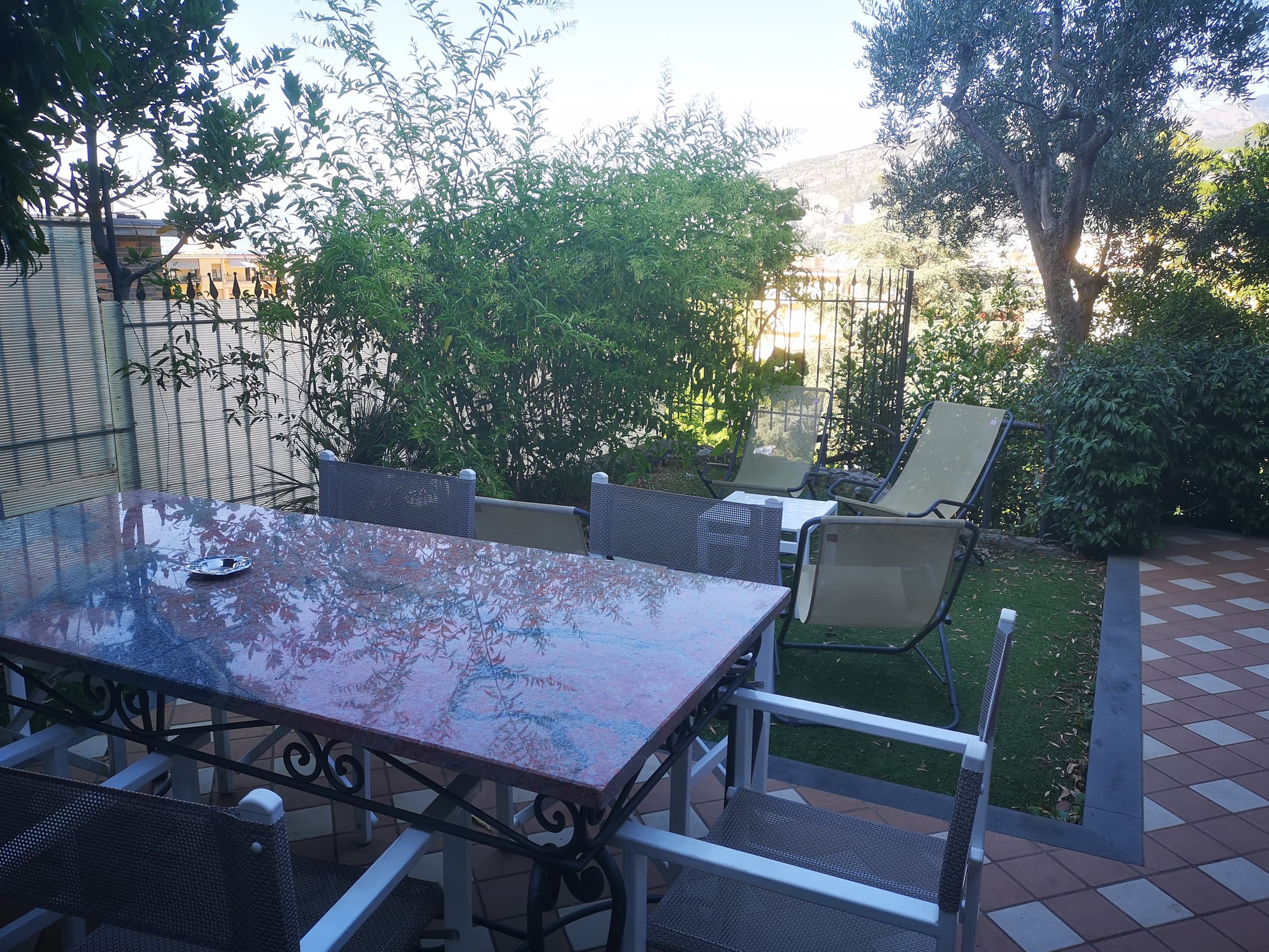 - Terrace and patio surrounded by greenery among olive trees and Mediterranean scrub